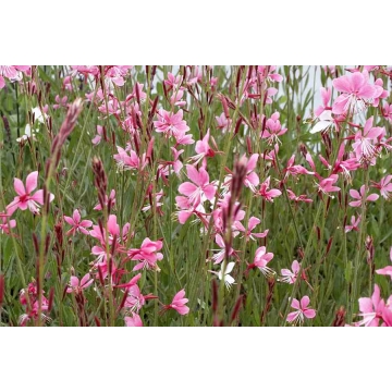 Gaura of Prachtkaars zijn planten met rood gevlekte bladeren voor een beschutte plaats