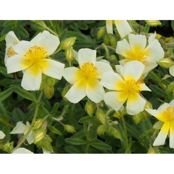 ZonneroosjeHoogte:20cmBloem:roomwit in juni-augustusZonDoorlatende humusrijke grondRotsplant7st.per m2