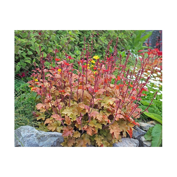 PurperklokjeHoogte:60cm.Blad:bronskleurigBloem:rood in mei-septemberZon,halfschaduwDoorlatende,humusrijke standplaatsGeschikt als vakbeplanting9st.per m2