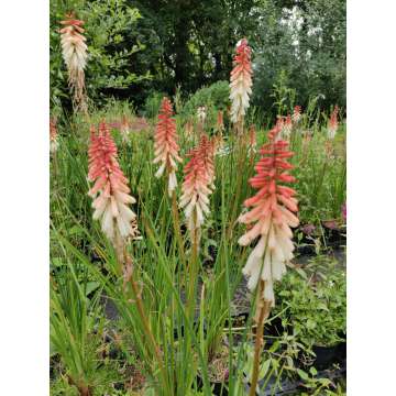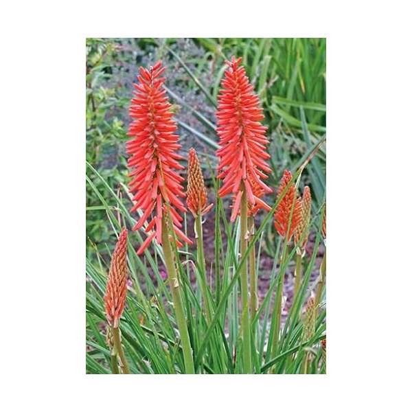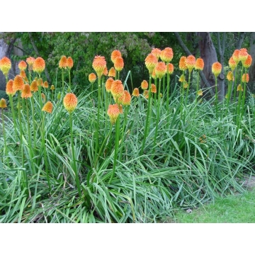 Kniphofia of Vuurpijl Zijn decoratieve planten met cilindervormige bloemen.