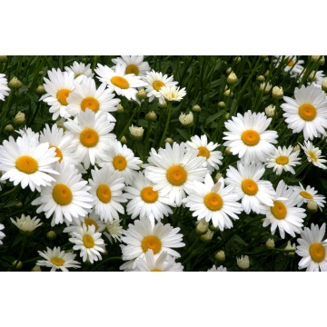 Margrietbloem:zuiverwit in juni-juliHoogte 100cmZon7st.per m2