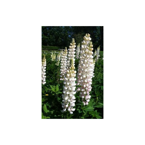 LupineHoogte:50cmBloem:wit in juni-juliZon,halfschaduwMinder gevoelig voor ziektenBorderplantNa de bloei terugknippen voor een 2e bloei7st.per m2