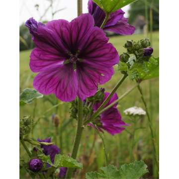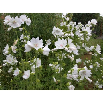Malva of Kaasjeskruid zijn langdurig bloeiende,enigzins struikvormig groeiende planten voor een voedzame grond
