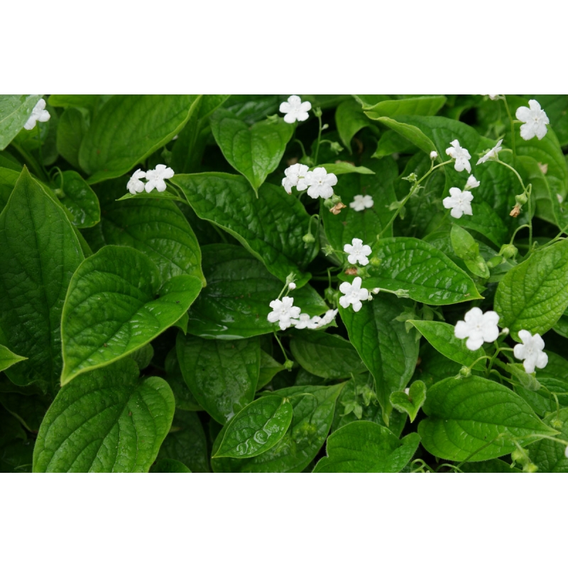 Amerikaans Vergeet-Me-NietjeBloem:wit in april-meiHoogte:15cm.Halfschaduw,schaduwHumusrijke,doorlatende grondBodembedekker9st.per m2