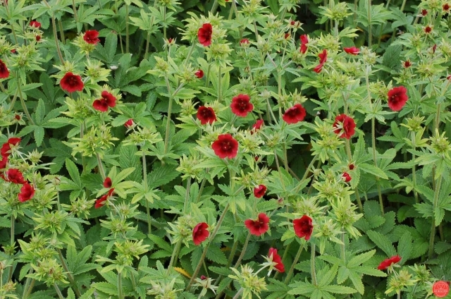Potentilla of Ganzerik Zijn veelzijdig bruikbare,rijkbloeiende planten met aardbeiachtig blad.