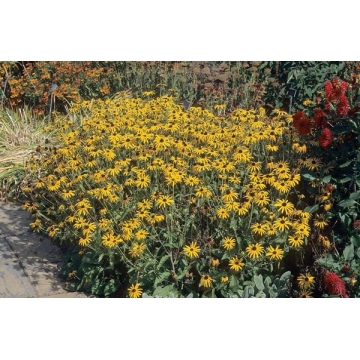 ZonnehoedHoogte tot 150cm.Bloem:Goudgeel,opvallend smalle bloembladeren in juli-septemberZonGeschikt als snijbloem en vakbeplanting5st.per m2