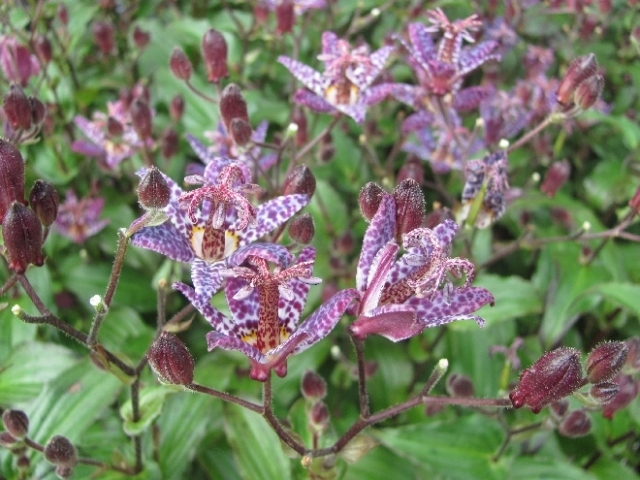 Tricyrtis of Armelui's Orchidee zijn aparte planten met lelievormige bloemen.